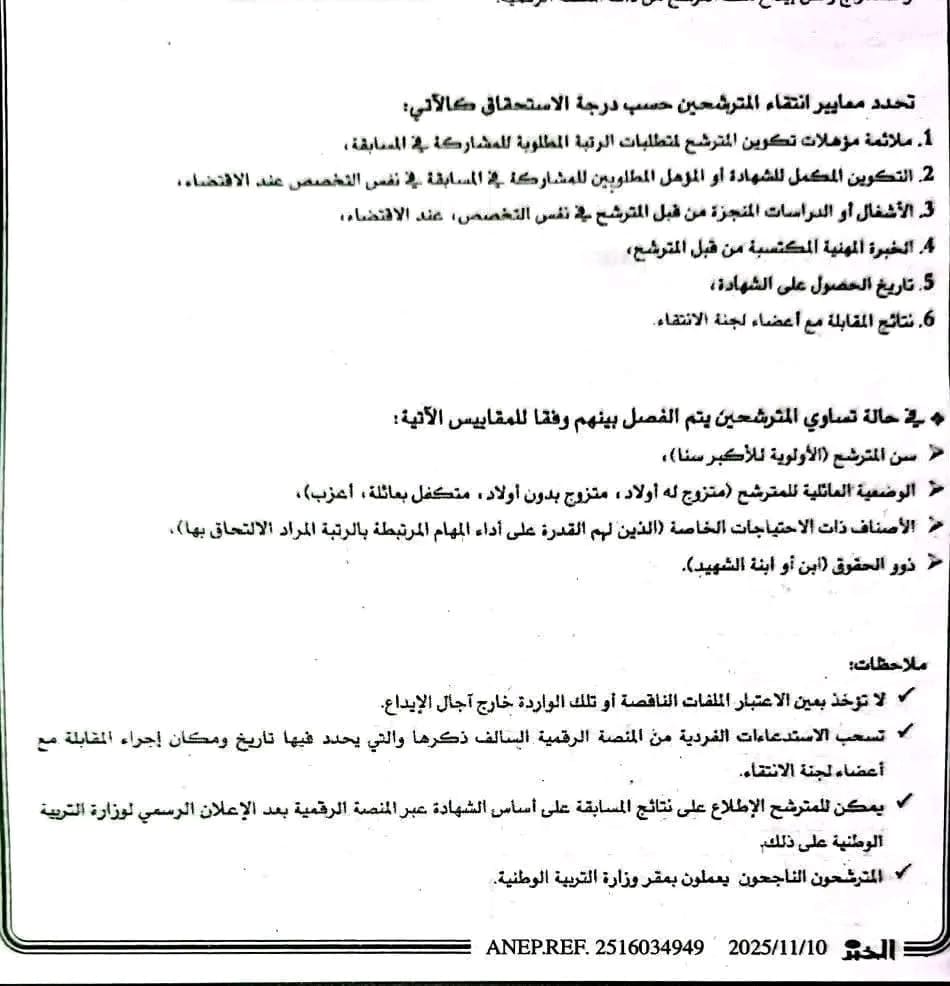• ملف الترشح لمسابقة وزارة التربية 2025